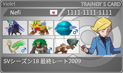 Nefiと申します。ポケモンSVシーズン18(レギュレーションG)にてレート2000を達成したため記念に記事を残します。そこまで長い時間かけて考えた構築ではないため簡潔に書きます。